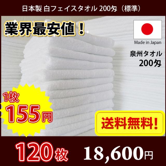 【送料無料】業界最安値! 120枚セット 日本製 泉州 白タオル 200匁 / 標準のタオル 普通のタオル 白いタオル 業務用タオル タオル フェイス 白 ホワイト 業務用 掃除 雑巾 まとめ買い 国産