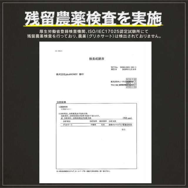 グリホサート分析機関l株式会社キューサイ分析研究所(グリホサート不検出)