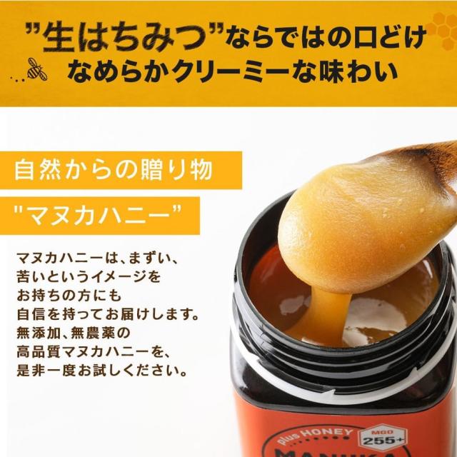 マヌカハニー MGO255以上 500g|大容量 非加熱 無添加 無農薬 生はちみつ plusHONEY ニュージーランド産 送料無料