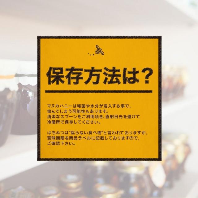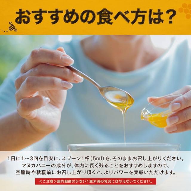 マヌカハニーは食品です。健康維持の補助としてご活用ください。医学的なご質問や効果効能についてはお答えできかねますので、気になる点がある場合は医師にご相談ください。
