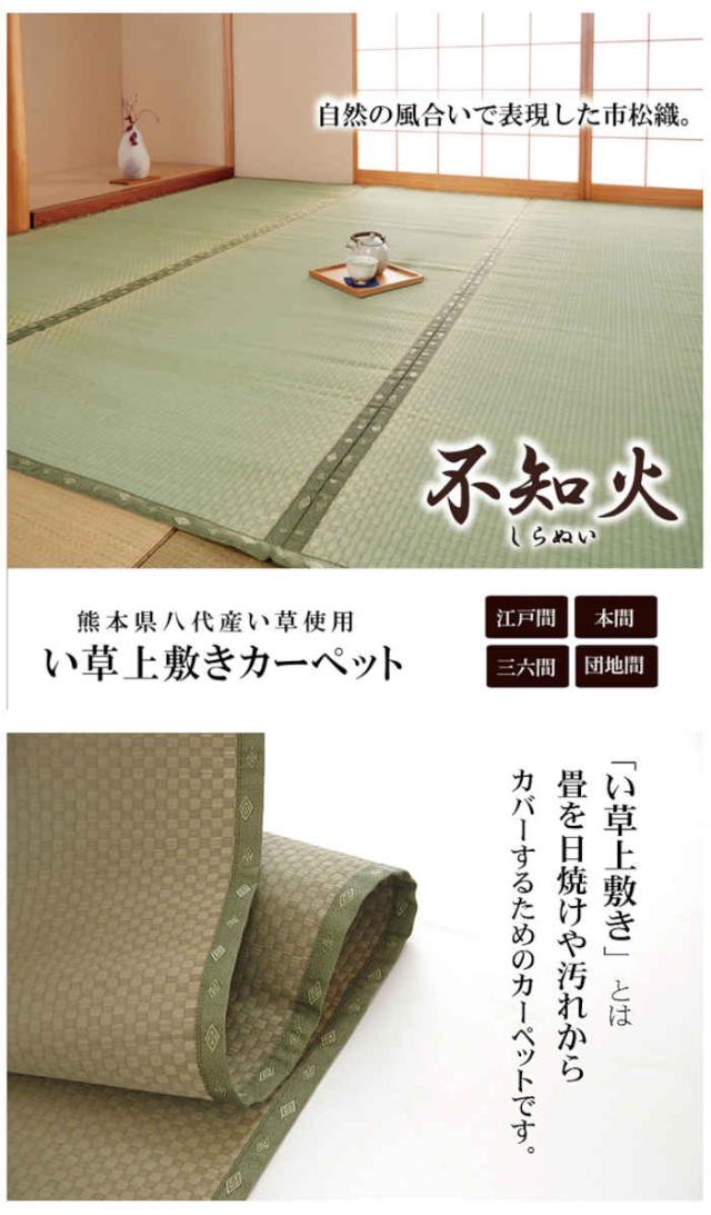 代引不可 い草 上敷きカーペット ござ 本間2畳 約191×191cm 熊本県八代産い草使用 畳の日焼けや汚れ防止に 空気浄化 調湿 消臭 抗菌防臭 両面 コンパクト収納 市松織 不知火 純国産 日本製 IKEHIKO 6300182