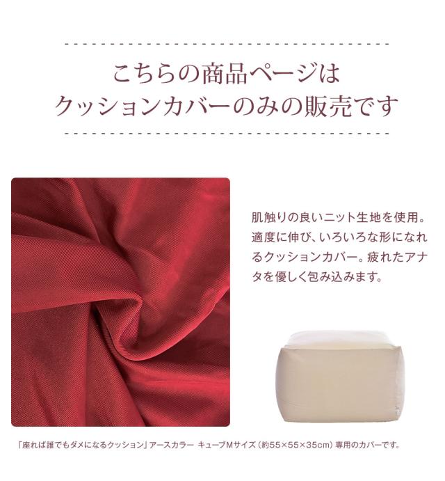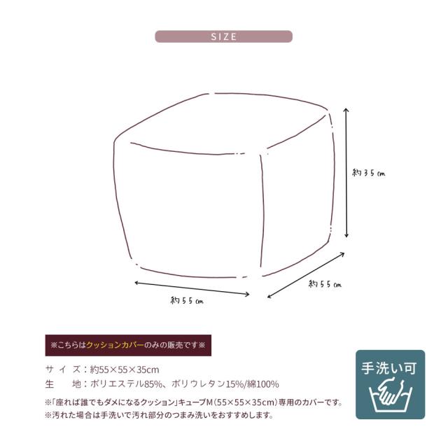 「座れば誰でもダメになるクッション」キューブM(55×55×35cm)専用のカバーです。