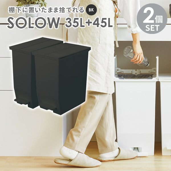 ゴミ箱 SOLOW ソロウ ペダルオープンツイン 35L+45L ブラック 2個セット | ごみ箱 ダストボックス おしゃれ ペダル式 カップボード下 キャスターつき 分別 カウンター下 キッチン 棚下 抗菌 観音開き