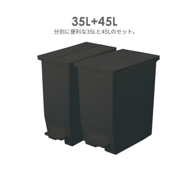 棚下に置いたまま捨てられるコンパクトなペダル式ダストボックス。【35L+45L 2個セット】