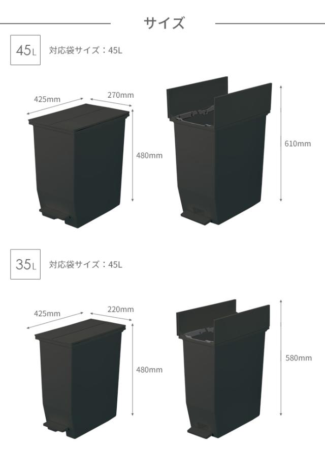 サイズ(約):35L/幅22×奥行42.5×高さ48cm 45L/幅27×奥行42.5×高さ48cm