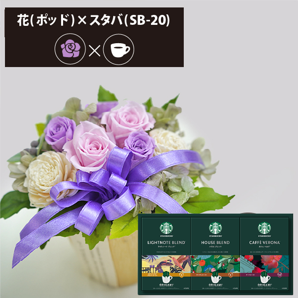 プリザーブドフラワー + スターバックス オリガミ コーヒーセット フラワーポッド (パープル) 送料無料(一部除外) 【_ HAREPB_