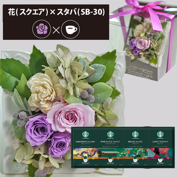 プリザーブドフラワー + スターバックス オリガミ コーヒーセット スクエア (パープル) 送料無料(一部除外) 【_ HAREPB_