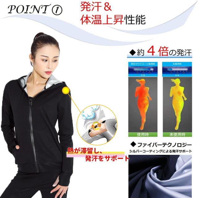 【発汗性能が約4倍・体温上昇】サウナスーツは、ファイバーテクノロジーによる特殊素材を使用。未使用時と比較して約4倍の発汗が期待でき、スーツ内で熱が滞留する為、体温の上昇も期待できます。