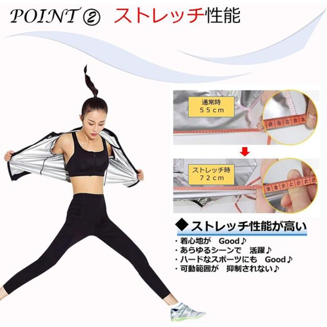 【静音・快適な着心地】サウナスーツ特有の気になるシャカシャカ音を最小限まで低減。従来品とは比較にならないストレッチ素材により幅広い動きに対応します。可動範囲も大きく、ハードな運動にも適応するスポーツウェアです。