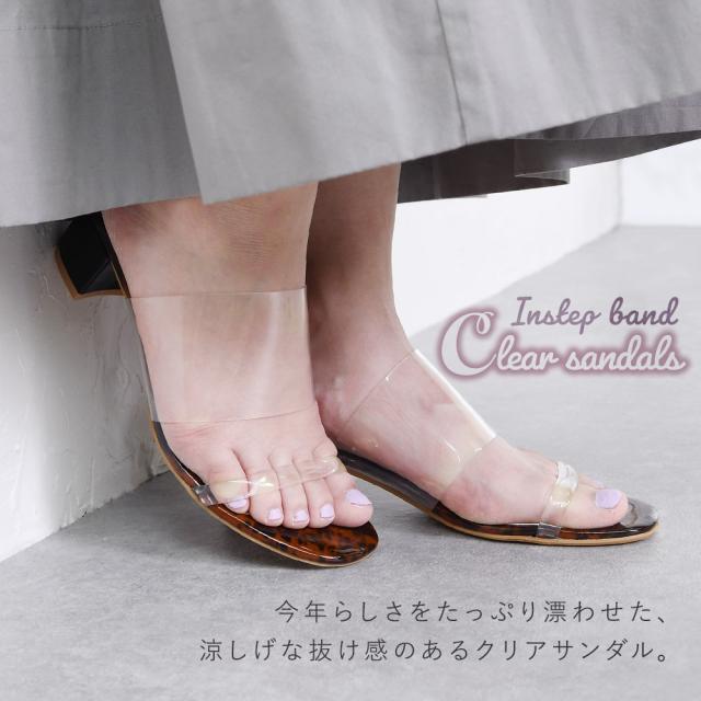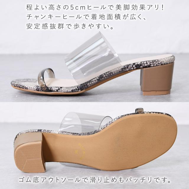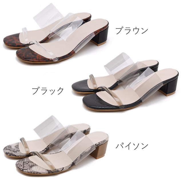 サンダル クリア 透明 チャンキーヒール つっかけ スリッパ レディース ストラップ ヒールサンダル 5cm 太ヒール 歩きやすい 痛くない クロコ べっ甲 パイソン 春新作