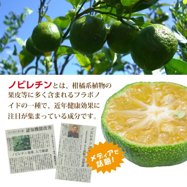1包でシークヮーサーの果実を果皮ごと約10個分食べるのと同じぐらいのノビレチンを摂取する事ができます。