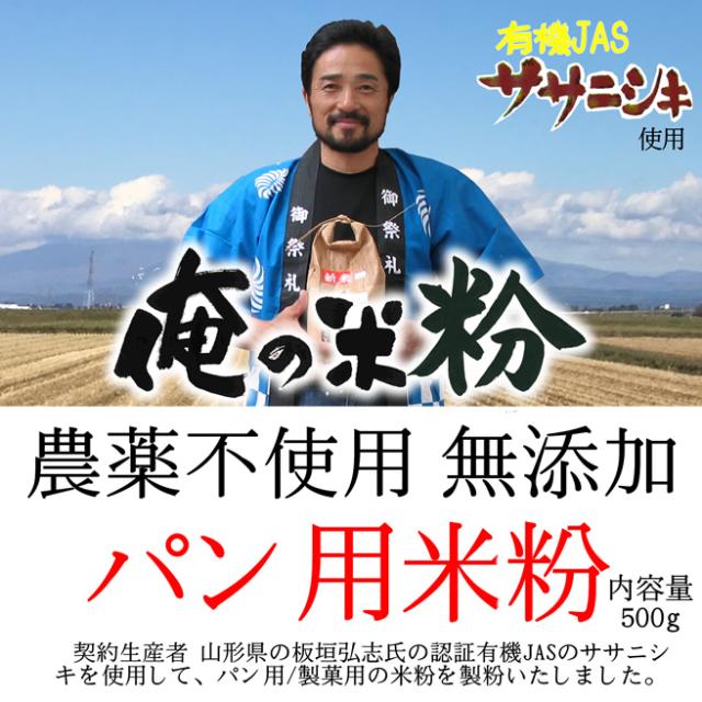 俺の米粉 農薬不使用 (有機JASのササニシキ) 無添加 パン用 米粉 500g