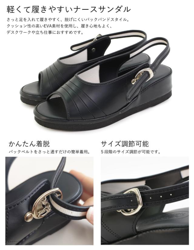軽くて履きやすいナースサンダル。 ベルトを通して留めるだけの簡単着脱、5段階のサイズ調節が可能。 疲れにくい高さの4cmヒールに、S〜3Lまでの豊富なサイズ展開。 インソールは歩行時の衝撃を軽減するクッション入りで快適な履き心地です。 ■サイズ:S〜3L ※サイズにつきましてはメーカー表記サイズとなります。 詳細は商品画像をご確認下さい。 ■素材: アッパー:PVC(塩化ビニール) 底材:EVA ■機能:抗菌加工・ノンスリップ ヒール高:約40mm 重量:約135g(Mサイズ/片足) ウィズ:3E <注意事項> ※お客様のご覧になられますパソコン機器及びモニタなどの違いにより、実際の商品素材の色と相違する場合もありますのでご了承下さい。【2103】 |