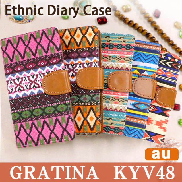 GRATINA KYV48 ケース カバー 手帳 手帳型 エスニック スマホケース スマホカバー グラティーナ