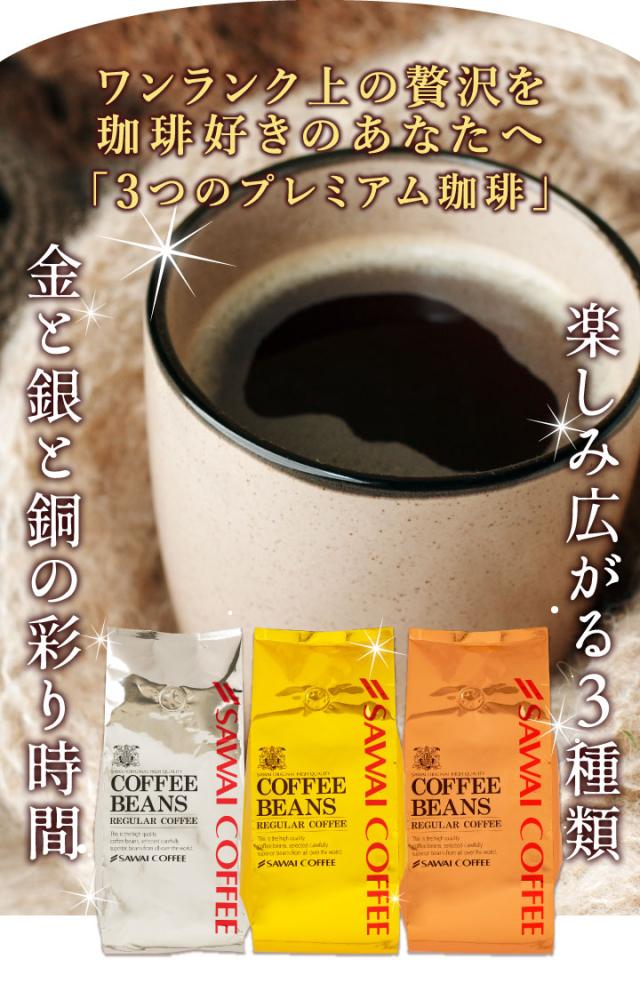 【澤井珈琲】金と銀と銅の珈琲 120杯 分 福袋 ソルブレンド ルナブレンド テルスブレンド(コーヒー/コーヒー豆/1.2kg/珈琲/珈琲豆/お試し/コーヒー粉/粉) 母の日 ギフト