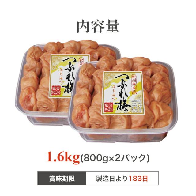 梅干し はちみつ梅 800g×2パック 紀州南高梅 うめぼし 大粒 つぶれ梅 はちみつ ハチミツ 蜂蜜 はちみつ漬け 和歌山県産 国産 塩分約3% 送料無料