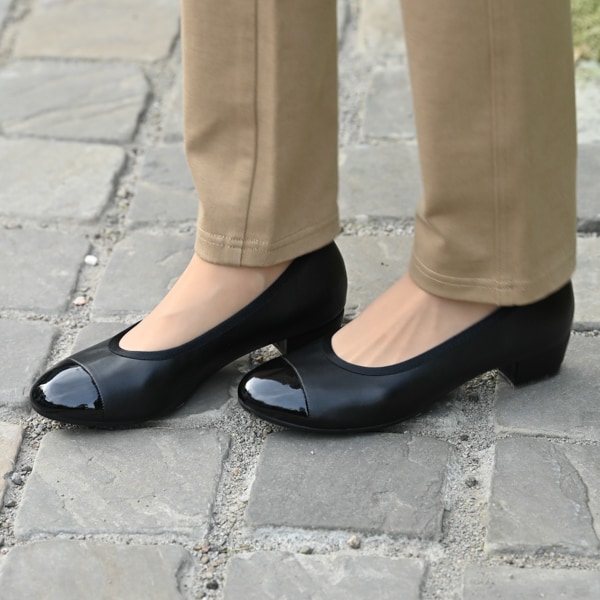 【ゆったり幅】ソフト 切替デザインパンプス(3.0cmヒール)ラクチンきれいシューズ