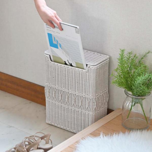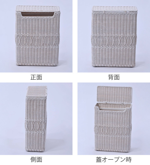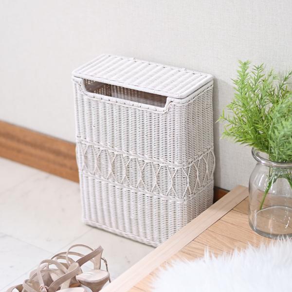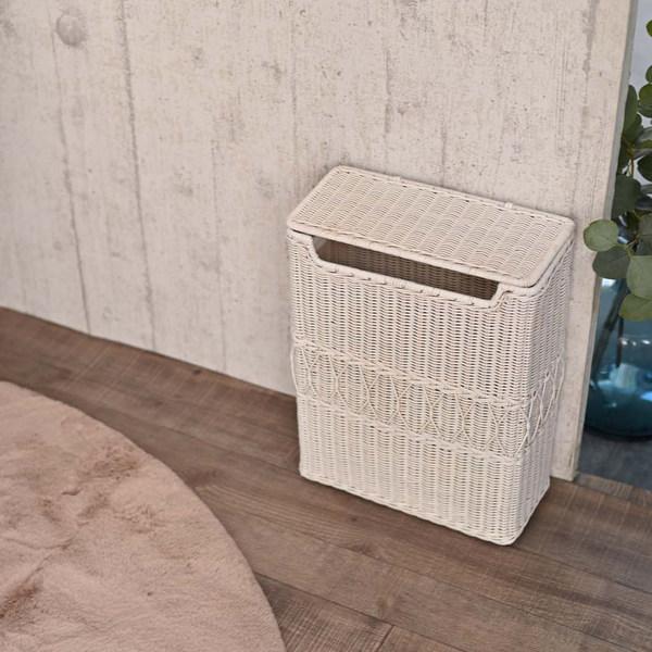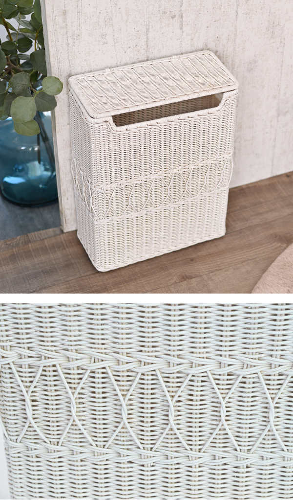 ラタンを編み込んだ可愛らしい角型ダストボックス