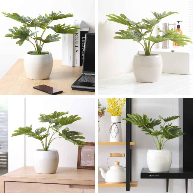 人工観葉植物 ポット フィロデンドロン フェイクグリーン 光触媒 造花 ( ミニ 卓上 観葉植物 人口植物 フェイク アートグリーン 触媒加工 抗菌 消臭 緑 グリーン 癒し リラックス 玄関 トイレ リビング お手入れ不要 おしゃれ )