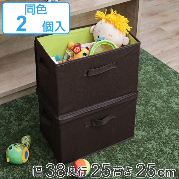 収納ケース 幅38×奥行25×高さ25cm 布 不織布 積み重ね カラーボックス インナーボックス フルサイズ 同色2個入り ( 収納ボックス スタッキング ボックス 収納 ケース フタ付き インナーケース 折りたたみ 引き出し 取っ手付き )