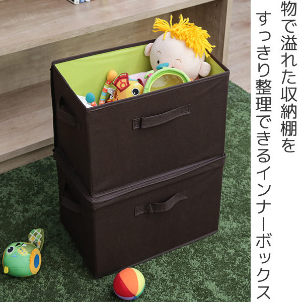 カラーボックスにぴったりのサイズで、タオルやおもちゃなど、日用品のあらゆるアイテムが収納できます。A4用紙が入る大きさなので、書斎などでも活躍する嬉しいサイズです。