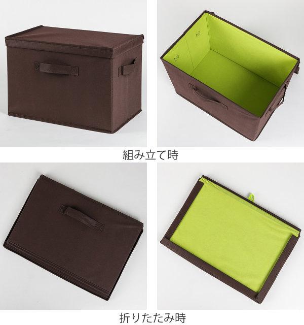 フタは後ろにペタッと折りたたむことができます。インナーボックスとして使用する際、フタを付けずにさっと片付けたい時に便利です。内側はおしゃれなグリーンカラーです。