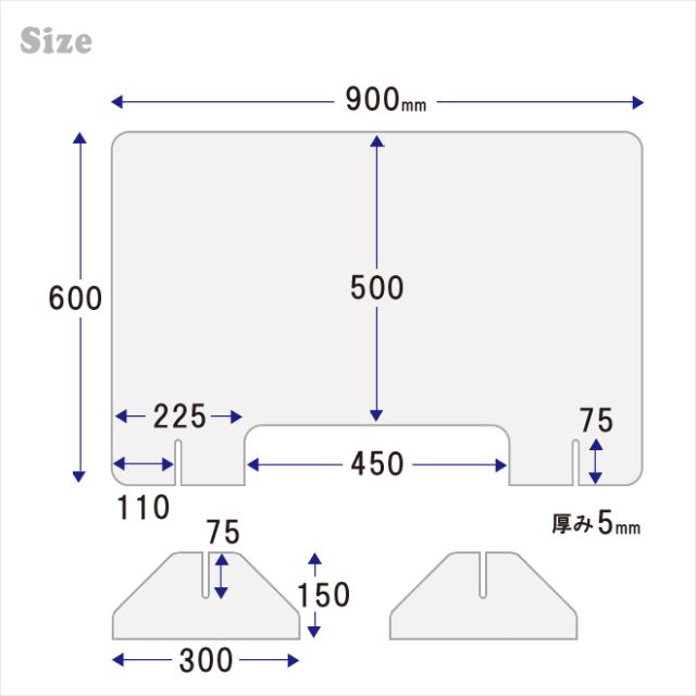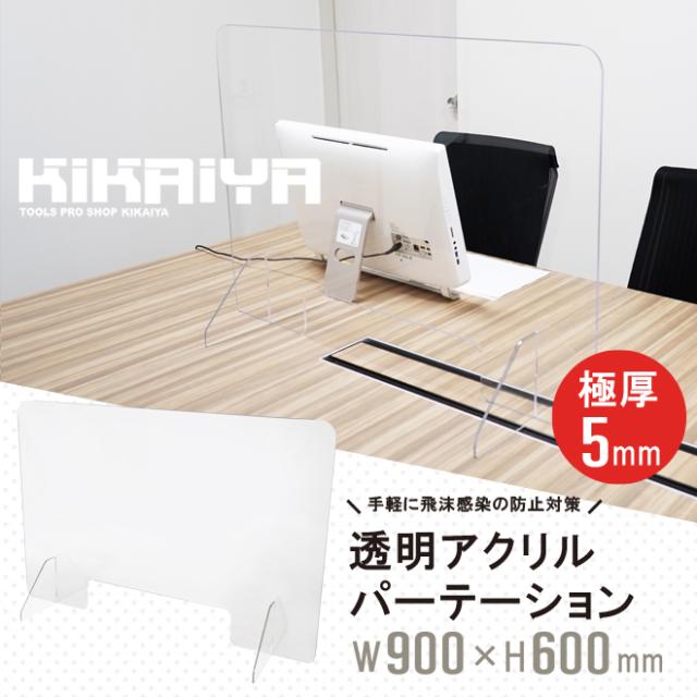 アクリルパーテーション 透明 W900mm H600mm 極厚5mm 飛沫ガード インフルエンザ ウイルス 感染対策 アクリル板 仕切り板 衝立 KIKAIYA