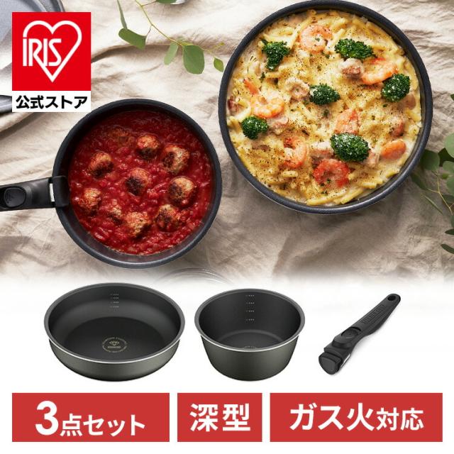 フライパン セット 3点 鍋 ガス火専用 26cm 20cm 深型 セット ガス火 ダイヤモンドコートパンディープラス DCG-S3S ダイヤモンドコート ハンドル 一人暮らし 新生活 ギフト ひとり暮らし オーブン キッチン アイリスオーヤマ プレゼント