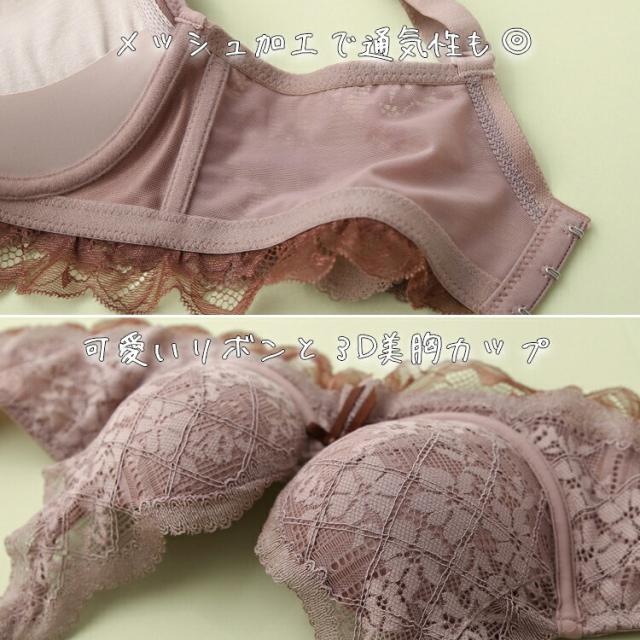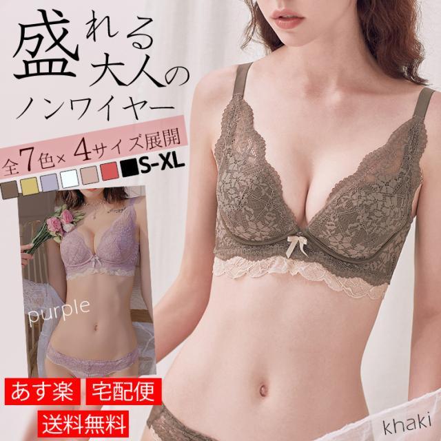 ポイント10倍中! ノンワイヤーブラ 上下セット ブラジャー ショーツ 可愛い かわいい Aカップ AAカップ Bカップ 勝負下着 40代 30代 20代 盛れる ランジェリー ピンク レース ブラセット ノンワイヤー 脇高 黒 パープル カーキ レッド ホワイト ベージュ