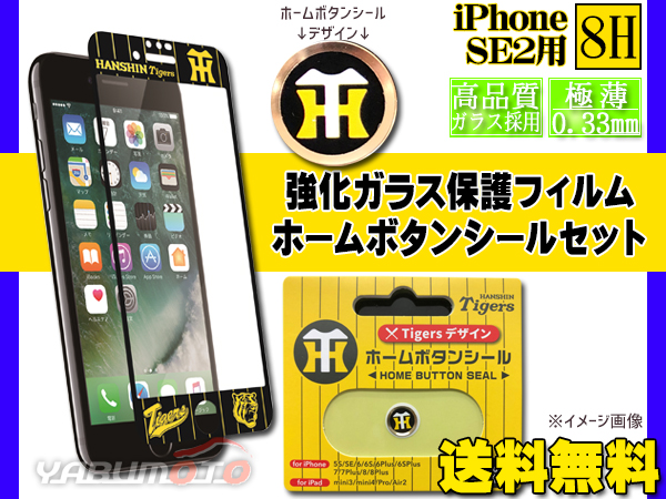 タイガース公認 強化ガラス 保護フィルム ホームボタンシール B HTロゴ セット iPhone SE2 SE3 スマホ 阪神 メール便 送料無料