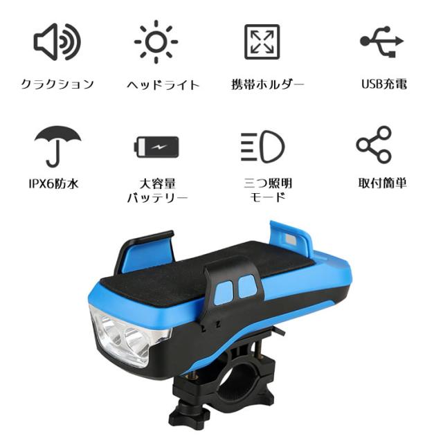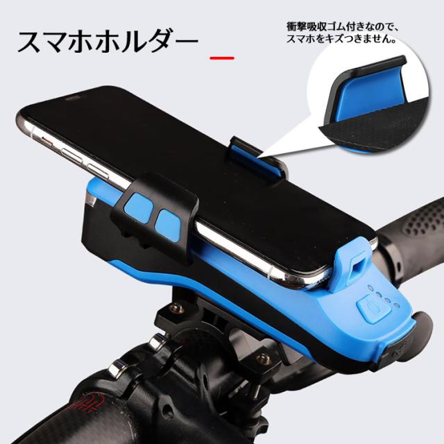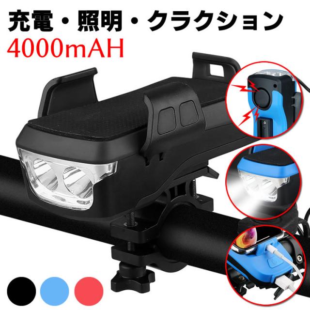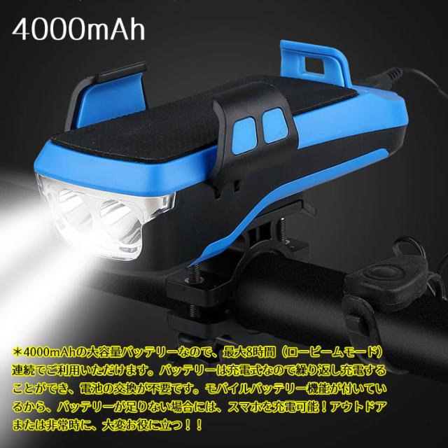 自転車ホルダー ライト USB充電式 LEDヘッドライト 自転車ヘッドライト 4000mah 大容量 パワーバンク モバイルバッテリー フロントライト ホルダー 防水 スマホスタンド スマホ充電可能 高輝度 防水 懐中電灯 夜間乗り ウォーキング 登山 防災