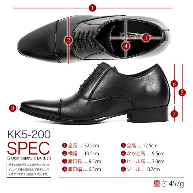 シークレットビジネスシューズ 7cmUP 内羽根 ストレートチップ kk5-200-g 全4色