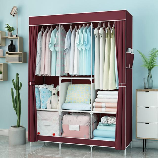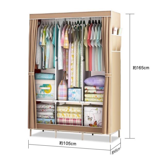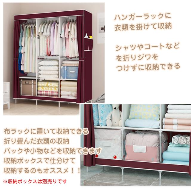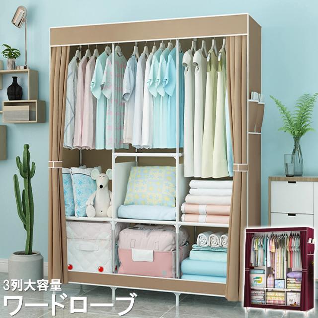 送料無料 ワードローブおしゃれ クローゼット 3列 大容量 収納 カバー付き ラック ハンガー 衣類収納 軽量 カーテン 組み立て式