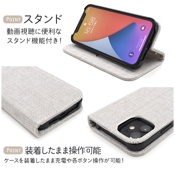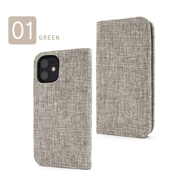 スマートフォンケース iPhone12mini用 手帳型 麻生地風 ツイード柄 麻布風 スマホケース シンプル カジュアル 装着簡単 ケータイケース 和風 お洒落 横開き オシャレ おしゃれ SoftBank au docomo 大人可愛い 大人女子 ガーリーカジュアル ベーシック