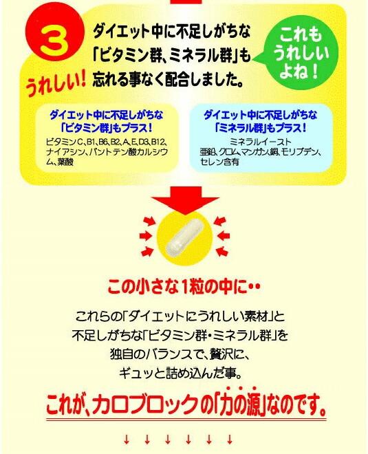 | 原料名 | 白インゲン豆エキス末、とうもろこしでん粉、澱粉分解物、バナバ葉エキス末、ガルシニアエキス末、生コーヒー豆エキス末、ミネラルイースト(亜鉛、マンガン、銅、ヨウ素、セレン、クロム、モリブデン含有)、ヒバマタ抽出物、ブドウ種子抽出物/プルラン(被包材)、ショ糖エステル、ビタミンC、ナイアシン、パントテン酸Ca、ビタミンB1、ビタミンB6、ビタミンB2、ビタミンA、葉酸、ビタミンE、ビタミンD3、ビタミンB12 |