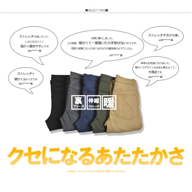 内側が暖かなフリース地になったスーパーストレッチ素材のチノパン S M L LL 23aw