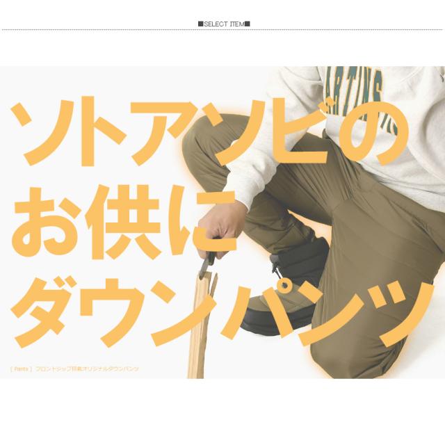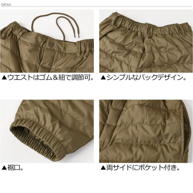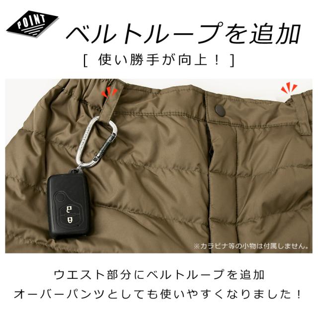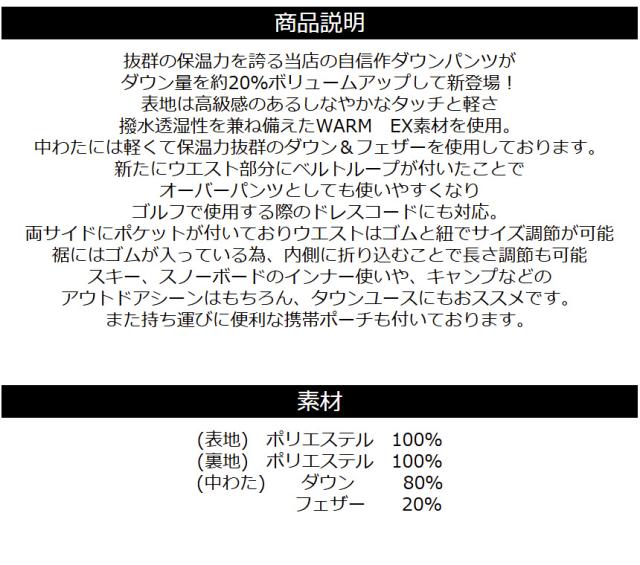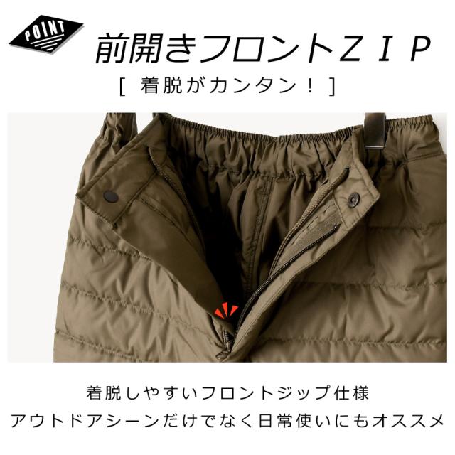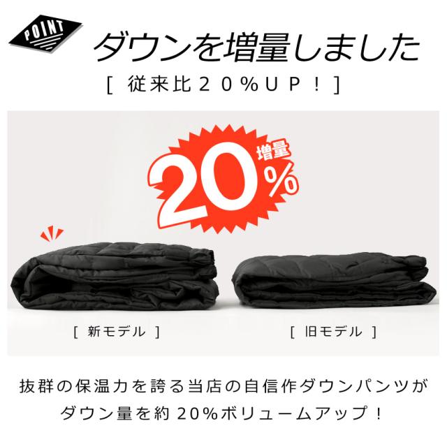 ダウン量を約20%ボリュームアップして新登場 冬でも暖かダウンパンツ。前開き仕様なのでオーバーパンツとしても着脱しやすい 24aw S M L LL 3L