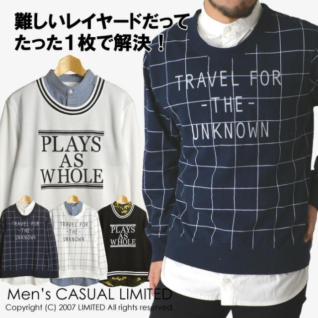 送料無料 スウェット トレーナー メンズ シャツ フェイクレイヤードカットソー 通販M3【7C0593】