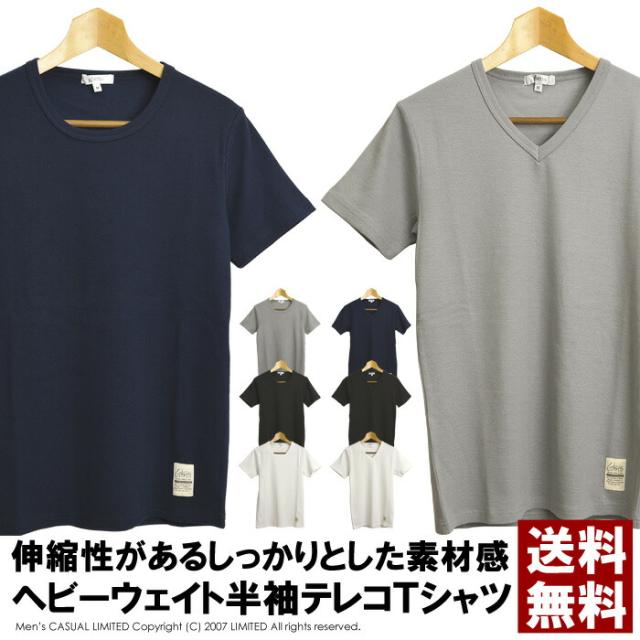 tシャツ メンズ 半袖 無地 ストレッチ カットソー Vネック クルーネック テレコ 定番 ヘビーウェイト 送料無料 通販M15【9A0265】