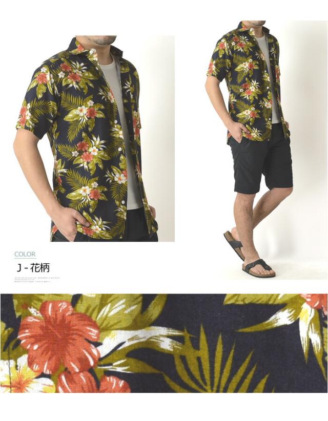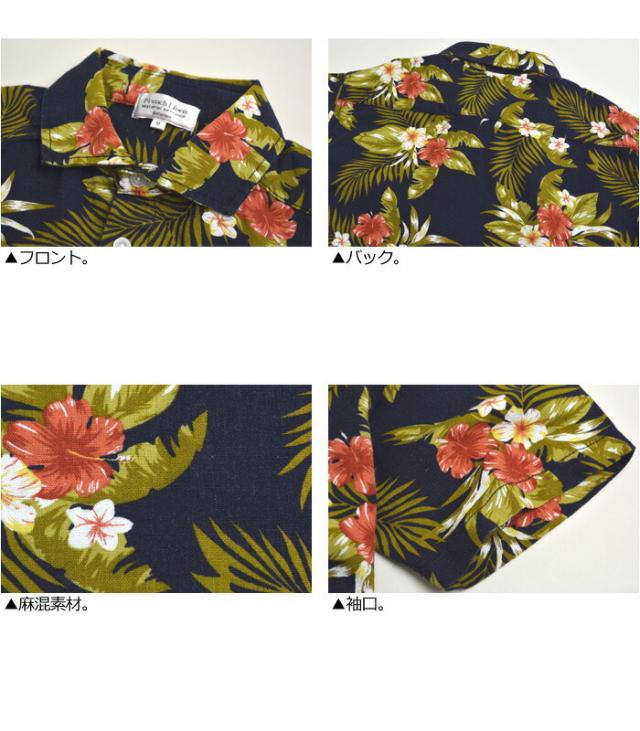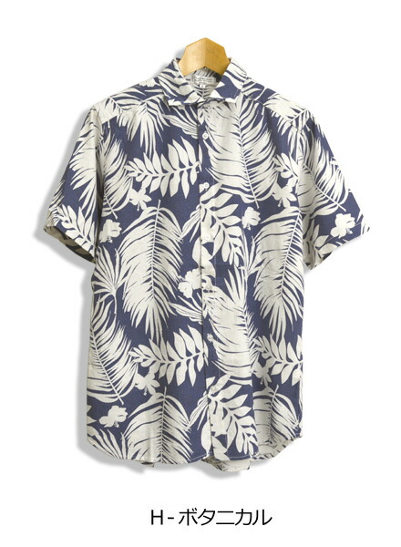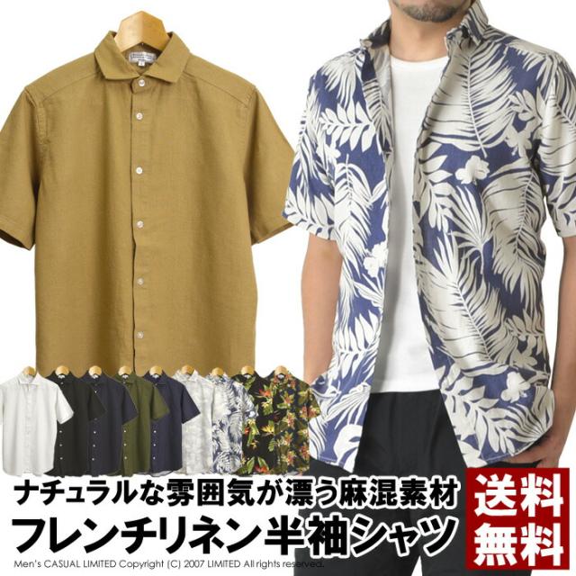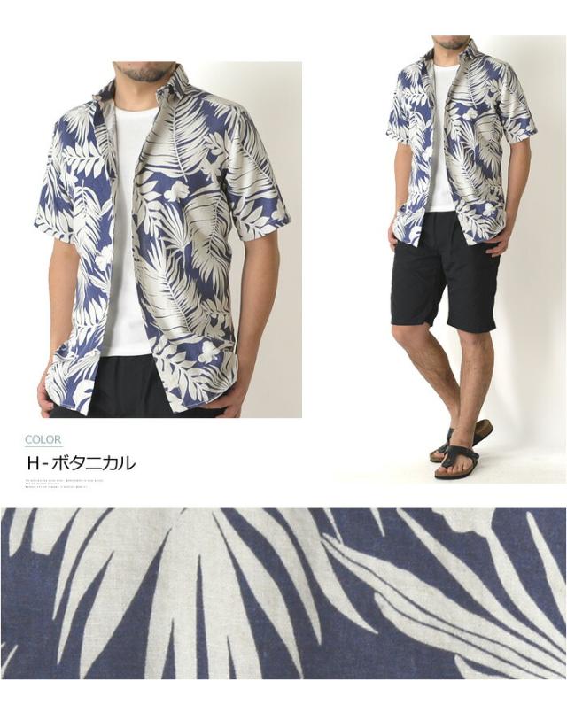 半袖 リネン シャツ メンズ フレンチリネン 麻 無地 アロハ 花柄 ボタニカル 送料無料 通販M2【RC4-0936】