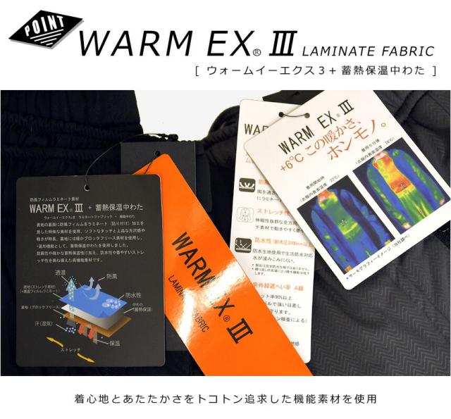 防風フィルムを表面にラミネートした特殊な素材、WARMEXを使用。