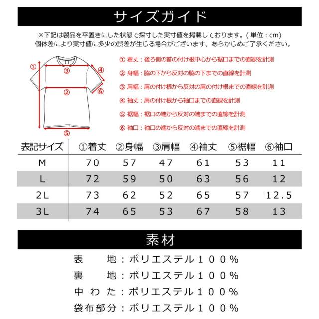 | タグ表記 | 着丈 | 身幅 | 肩幅 | 袖丈 | 裾幅 | 袖口 |