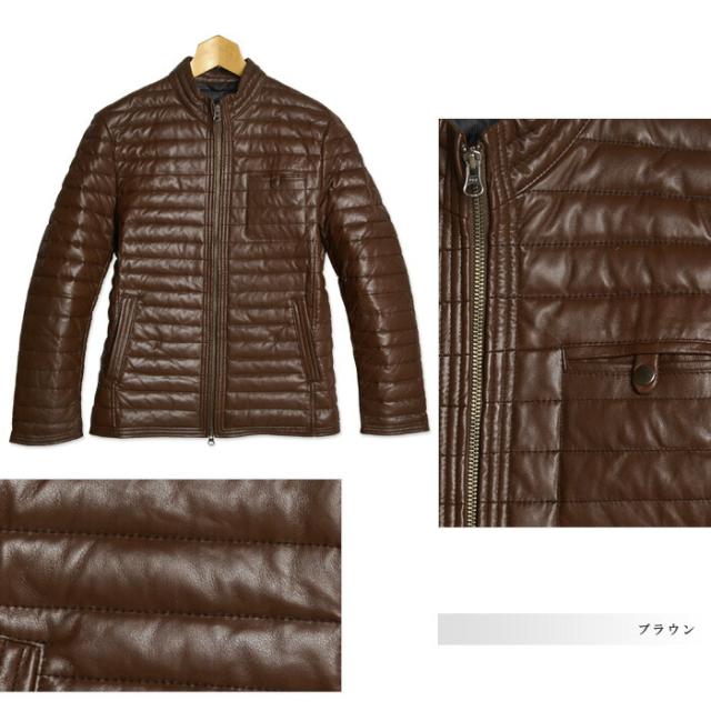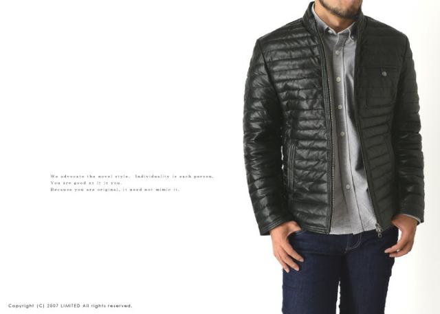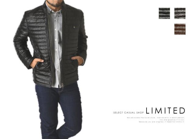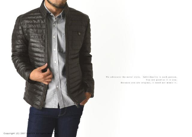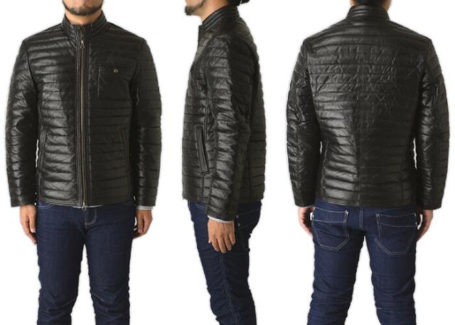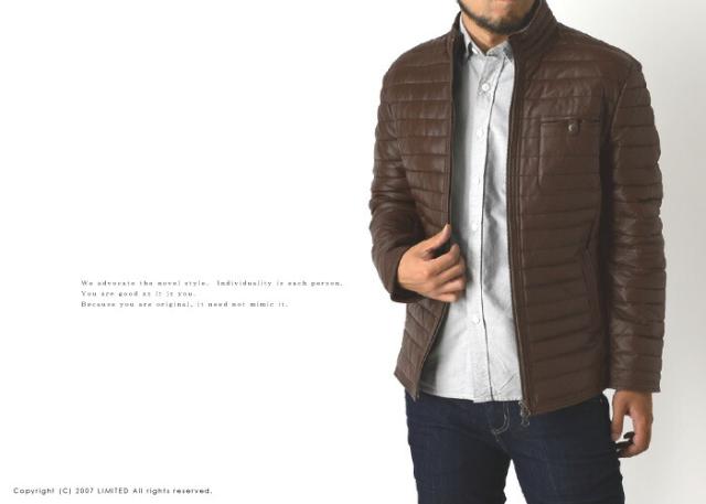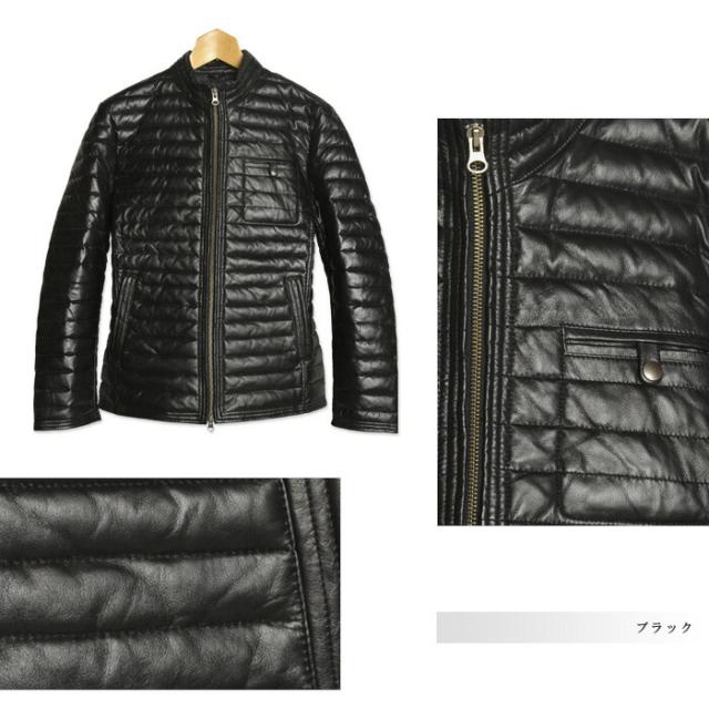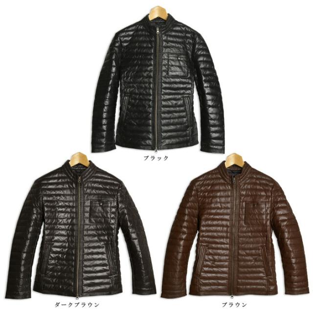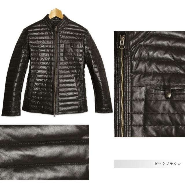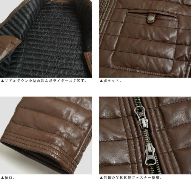 送料無料 ラムレザーシングルライダースジャケット メンズ 本革ダウンジャケット【RM0565】
