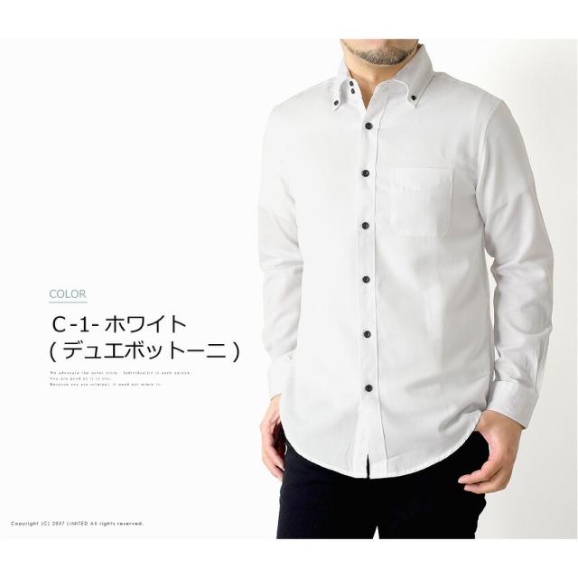 シャツ メンズ 長袖 オックスフォードシャツ 無地 ビジネス Yシャツ ボタンダウン バンドカラー デュエボットーニ カジュアル ワイシャツ 送料無料 通販M15【R3G-0793】