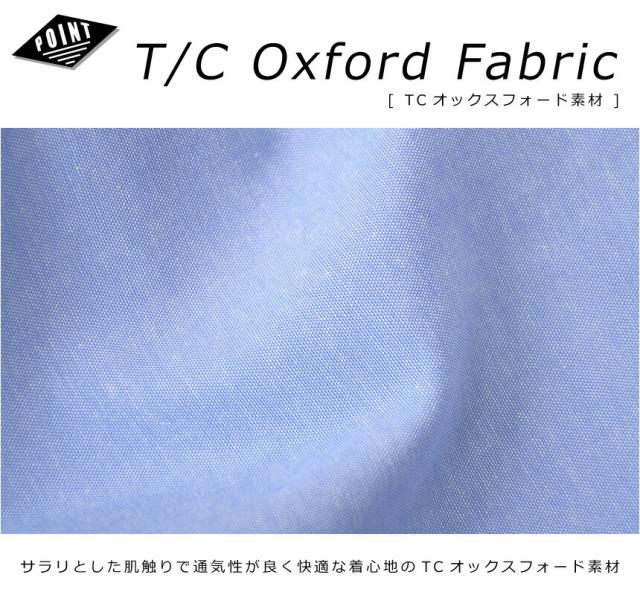 さらりとした肌触りで通気性が良く快適な着心地のTCオックスフォード素材を使用しております。