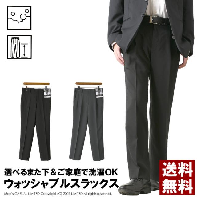 選べる股下丈 メンズ スラックス 紳士 ビジネス ノータック ツータック パンツ ウォッシャブル スーツ 裾上げ不要 冠婚葬祭 【M1-1260】 送料無料 通販M3