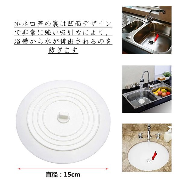 【サイズ】排水口蓋のサイズ:直径15cm シンク排水口の穴14cm以内対応。キッチン、バスルーム、シンク洗濯場、洗面所台所、シンクなどの排水口の水漏れに対応できます。