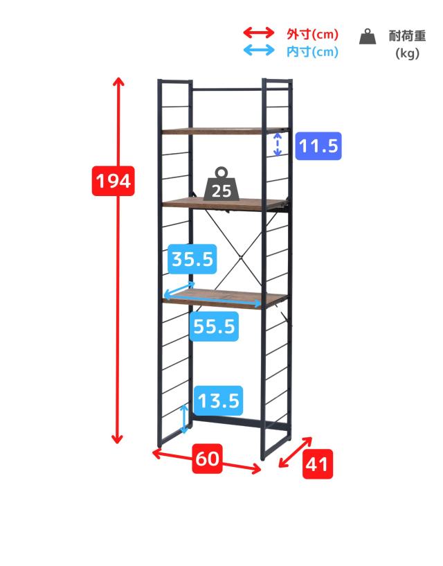 | 本体サイズ | 幅60×奥行41×高さ194cm 重量19.5kg |