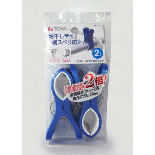 ●軟質素材の滑り止めと2つのバネで、風などによる竿の横滑りをしっかり防止します。片手で簡単に取り付けられる、ピンチタイプなので、高い位置の竿に便利。