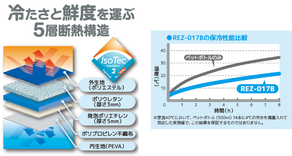 5層の断熱構造で高い保冷力を発揮します。複数の材質を組み合わせたアイソテック2の断熱構造が、冷たさをしっかりとキープします。